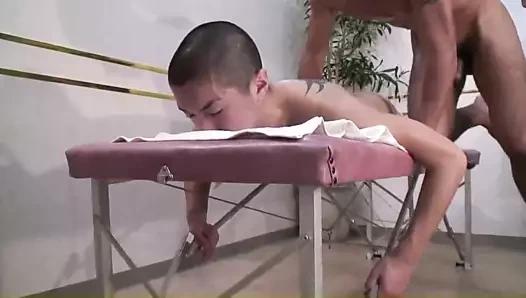 Bronzlaşmış 18 Yaşındaki Twink Marty Azgın Adam Billy Tarafından Prezervatifsiz Sikiliyor